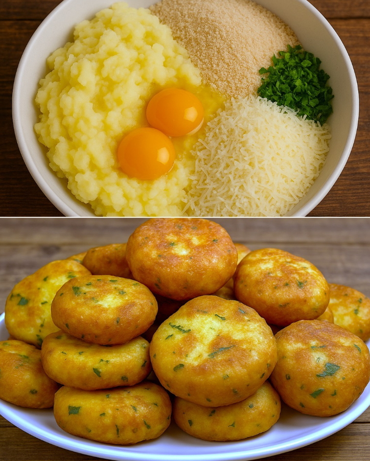 Meng de puree met de eieren, Parmezaanse kaas, paneermeel, peterselie, zout en peper.