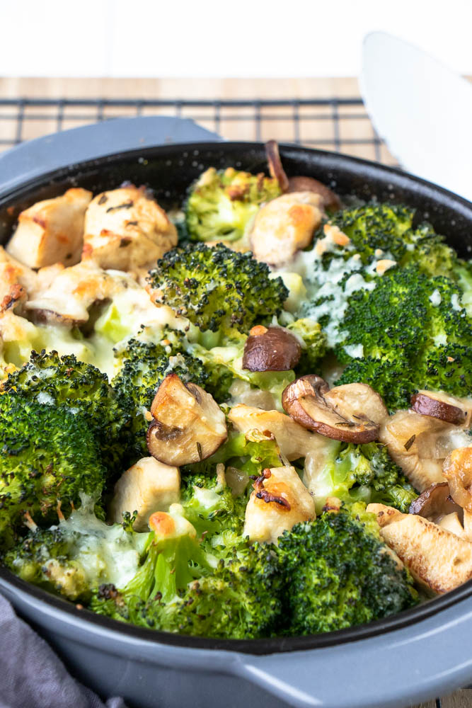 Snelle ovenschotel gerechten zijn wat mij betreft ideaal voor drukke avondspitsen. Je weet wel, van die dagen waarop je laat klaar bent met werken, er ook nog gesport gaat worden en de eerste afspraken al vroeg op de avond zijn gepland. Nou voor die momenten – en alle keren dat je niet te lang in de keuken wilt staan – is dit recept voor ovenschotel met broccoli, kip en champignons!