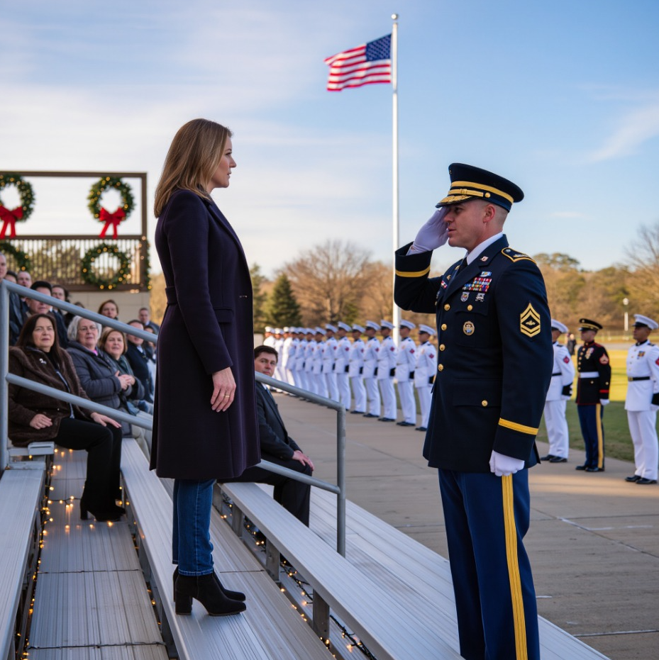 Toen veranderde alles. Een man in uniform stond stokstijf stil. Niet zomaar een man: kolonel Marshall Conincaid. Zijn laarzen vielen zo hard op de grond dat de lucht om hem heen leek te bevriezen. De gesprekken zijn gestopt. De telefoons pauzeerden midden in de opname. Zelfs de wind leek gedesoriënteerd.