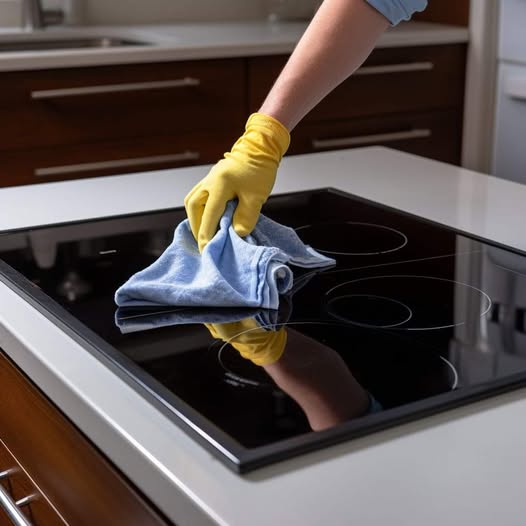 2. Wrijf de pasta voorzichtig met een zachte doek of spons op het fornuis.