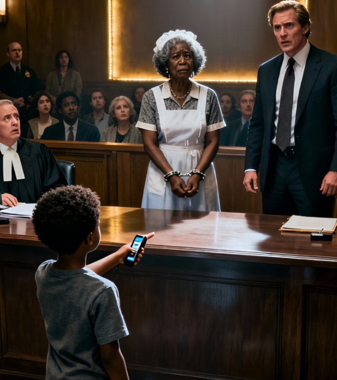 Lena Morales, achtenveertig jaar oud, had meer dan twintig jaar van haar leven gewijd aan het onderhouden van het weelderige huis van zakenman Victor Harrington. Die ochtend bewoog ze zich langzaam door de rechtszaal, gekleed in haar onberispelijk gestreken uniform, haar handen trilden, haar blik neergeslagen. Ze had geen advocaat, geen dossier, geen geld — en niemand naast zich.