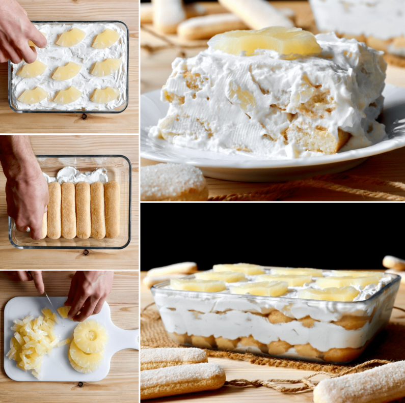 3-Voeg de gesneden ananas toe aan de room en roer.