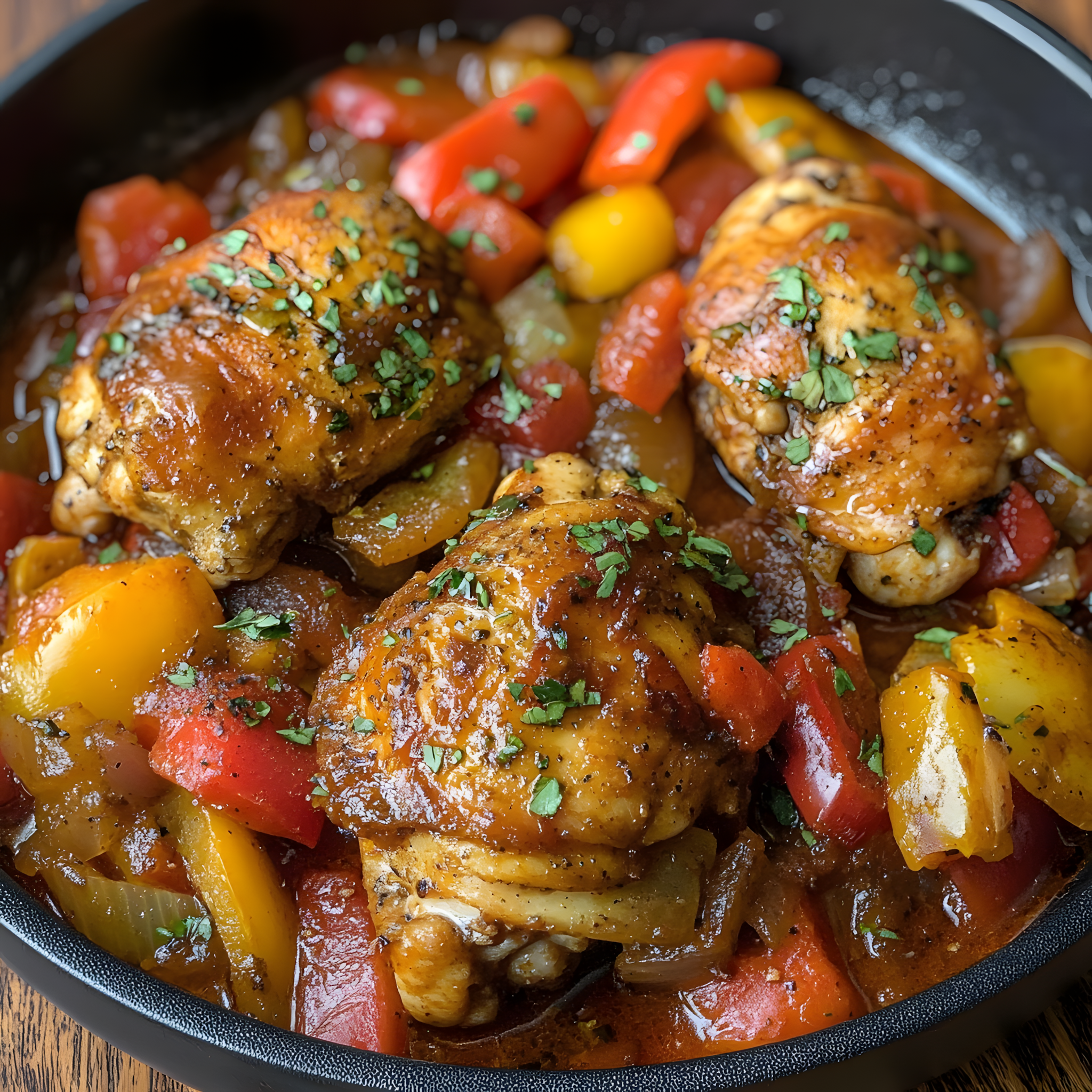 Een geurige en kleurrijke stoofpot met kip, paprika en tomaten – puur comfortfood uit Zuidwest-Frankrijk! 🇫🇷🌶