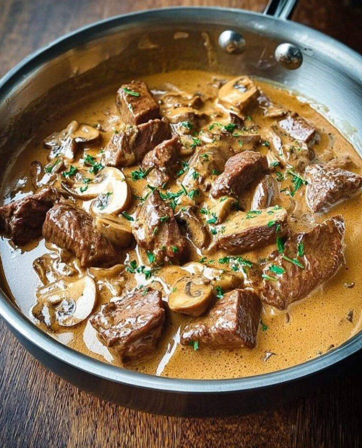 Ingrediënten van Alain Ducasse’s Beef Stroganoff Style (4 personen)