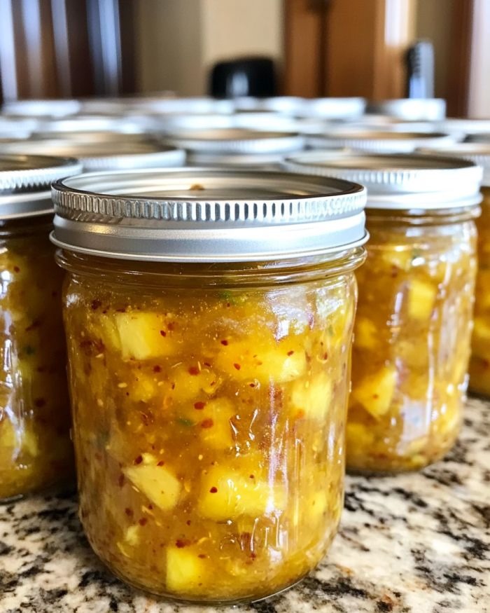 Deze pittige ananas-chilijam combineert prachtig met diverse gerechten. Smeer hem op warm, knapperig brood voor een eenvoudige maar heerlijke snack, of serveer hem bij een kaasplankje voor een zoete en pittige kick. Het is ook een heerlijke glazuur voor gegrilde kip of varkensvlees, en versterkt de smaken met zijn unieke mix van pittigheid en zoetheid. Voor een echte Midwesterse touch, probeer het als topping op maïsbrood of meng het met gebakken bonen voor een verrassende twist.
