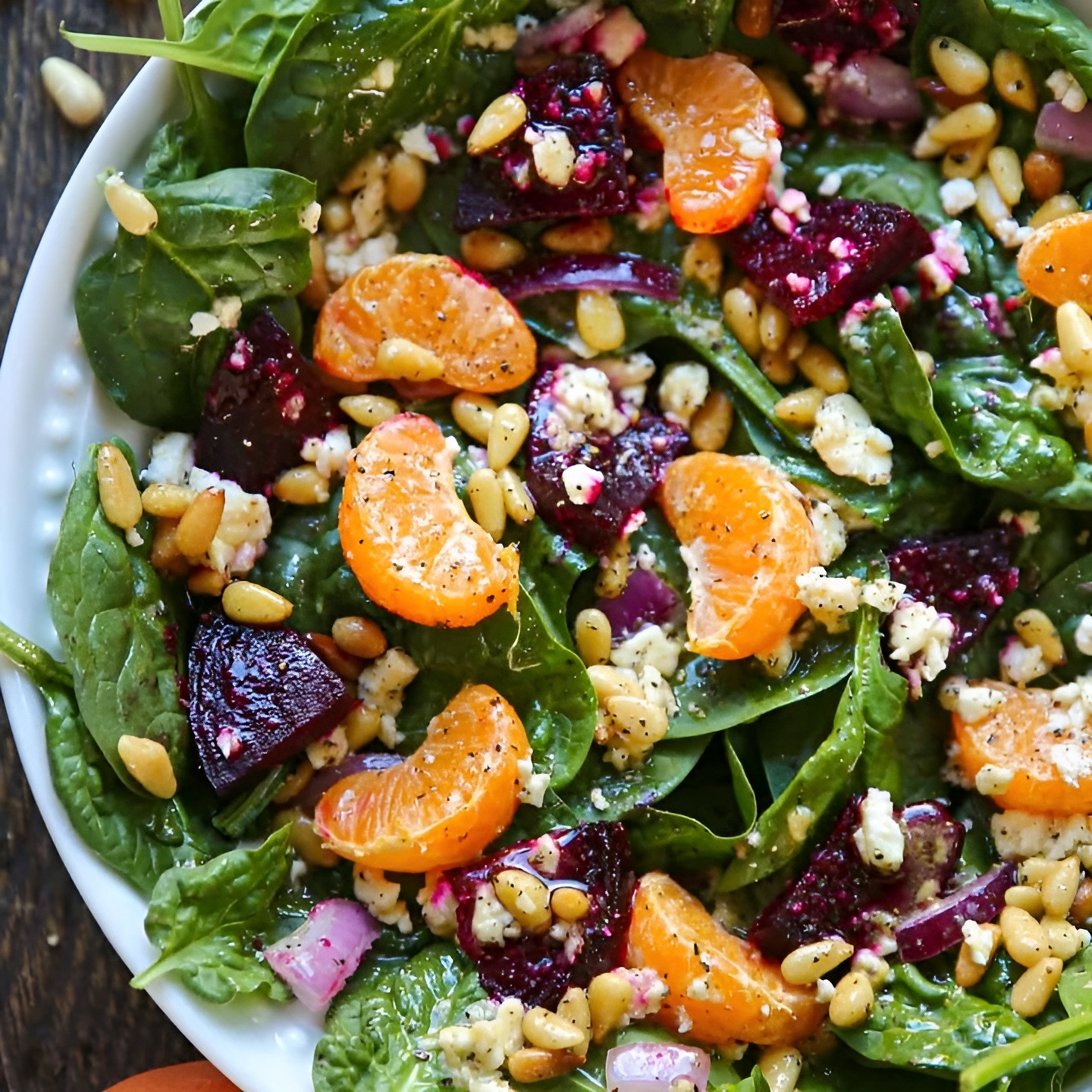 Een heerlijke en kleurrijke salade die de natuurlijke zoetheid van bieten combineert met de romigheid van geitenkaas en de knapperigheid van walnoten. Perfect als voorgerecht of als bijgerecht bij een lichte maaltijd.