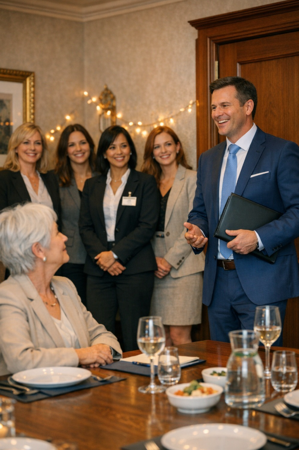 De gastvrouw glimlachte beleefd naar me en leidde me naar de privé-eetzaal achter in restaurant Carmichael’s – zo’n plek waar geen prijzen op de menukaart staan en de obers praten alsof ze in een kerk zitten.