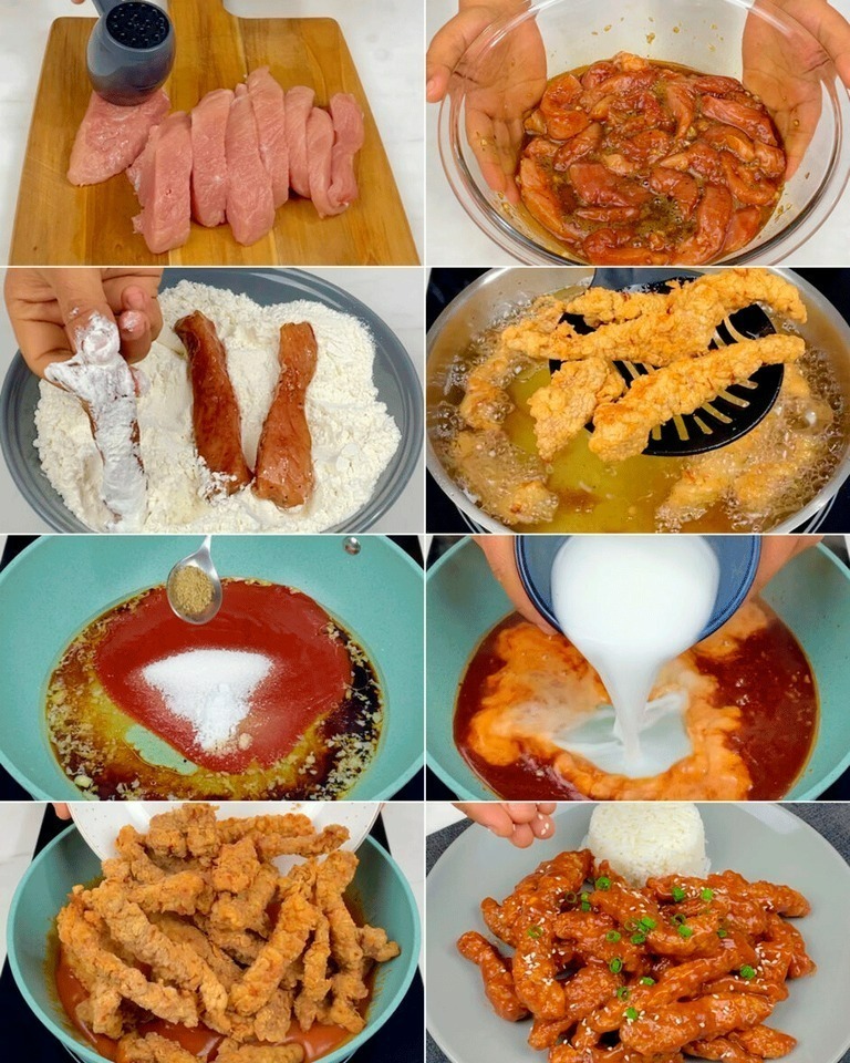 Ingrediënten: 1 kilo varkensvlees 30 ml shoyu 1 eetlepel gehakte knoflook 1 theelepel zout 1 theelepel zwarte peper (poeder) 2 eieren 1 kopje bloem Indien nodig oliën 1 eetlepel olie 1/2 theelepel gehakte knoflook 1/2 eetlepel gember (gehakt) 1/4 kopje water 30 ml shoyu 1/2 kopje ketchup 2 eetlepels suiker 1/2 theelepel zout 1/2 theelepel … Lire plus