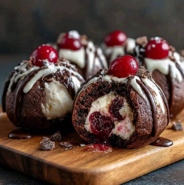 Deze decadente browniebommetjes combineren drie onweerstaanbare lagen: smeuïge, verkruimelde brownies, een zachte vulling van koekjesdeeg met kersen en een gladde chocoladecoating die met een bevredigende knispering hard wordt. Elke hap biedt een rijke mix van texturen – romig, chewy en knapperig – terwijl de maraschino-kersen een frisse zoetheid toevoegen die de intense chocoladesmaak perfect in balans brengt. Deze lekkernijen zijn perfect voor feestjes, cadeauboxen, dessertbuffetten of om stiekem uit de koelkast te pakken als je ‘s avonds laat trek hebt. Door de lagen eerst te koelen en vervolgens in te vriezen, worden ze prachtig stevig, waardoor het samenstellen eenvoudig is en je een mooie, glanzende chocoladecoating krijgt.