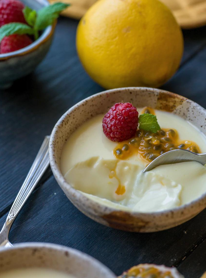 - Vers fruit – bijvoorbeeld passievrucht of frambozen