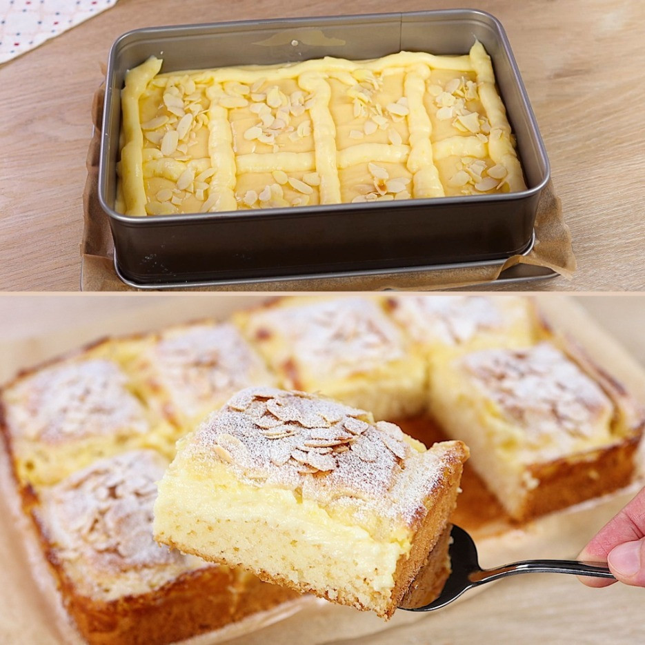 🍰Stel je voor dat je een cake aansnijdt die er vanbuiten delicaat en goudbruin uitziet, en eronder een verborgen laag zijdezachte citroenpudding ontdekt. 🍋​​Dat is precies wat deze citroenpuddingcake belooft: een dessert dat zowel verrukkelijk als verfrissend is. Vanaf de allereerste hap proef je een explosie van pittige citroensmaak, in evenwicht gebracht door een zachte, luchtige kruim. Het geheim zit hem in hoe de pudding- en cakelagen samen bakken, waardoor er twee texturen in één gerecht ontstaan. Dit is geen doorsnee citroendessert – het is een stukje zonneschijn op je bord. De goudbruine cake rijst prachtig, terwijl de pudding eronder heerlijk romig blijft. Als je erin snijdt, is het contrast verbluffend: luchtige cake bovenop, pittige pudding eronder. Het is als magie in een gerecht gebakken.✨