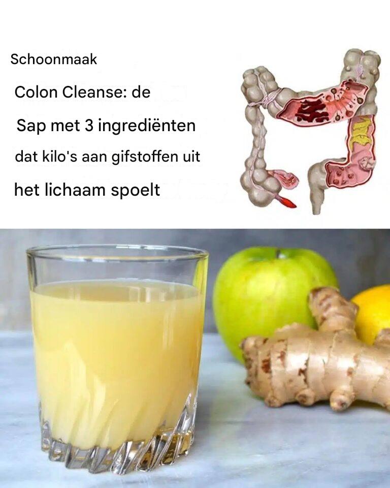 Heb je een opgeblazen gevoel, last van indigestie of een zwaar gevoel? Dit zijn veelvoorkomende tekenen dat je dikke darm overbelast is. Een trage of verstopte darm kan leiden tot vermoeidheid, spijsverteringsproblemen en andere gezondheidsproblemen. Gelukkig is er een eenvoudige, natuurlijke oplossing om je lichaam te helpen zichzelf te reinigen: een detox sapje gemaakt van appels, gember en citroen. Dit drankje helpt gifstoffen af ​​te voeren en bevordert een soepelere spijsvertering. Hier lees je hoe het werkt en hoe je het aan je dagelijkse routine kunt toevoegen.