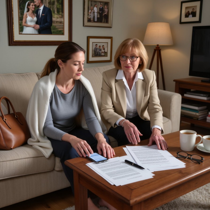Ik werd een paar dagen voor de bruiloft van mijn schoonzus opgenomen in het ziekenhuis. Zwak en onder een infuus zag ik mijn schoonmoeder binnenstormen en fluiten: « Kom of je wordt buitengesloten van de familie. » Ik kon amper staan, maar sleepte mezelf naar het ziekenhuis, glimlachend door de pijn heen om conflicten te vermijden. Een paar dagen later kwam ze op mijn deur kloppen, gooide me een stapel papieren toe en zei kil: « Je bent niet meer nuttig. Onderteken deze echtscheidingspapieren. Ik keek haar recht in de ogen en zei kalm: