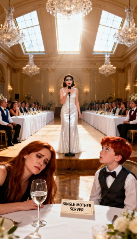 De kamer reageert als één lichaam. Schouders recht, gesprekken stierven uit, en alle ogen richtten zich op het tafereel… En voor mijn zoon.