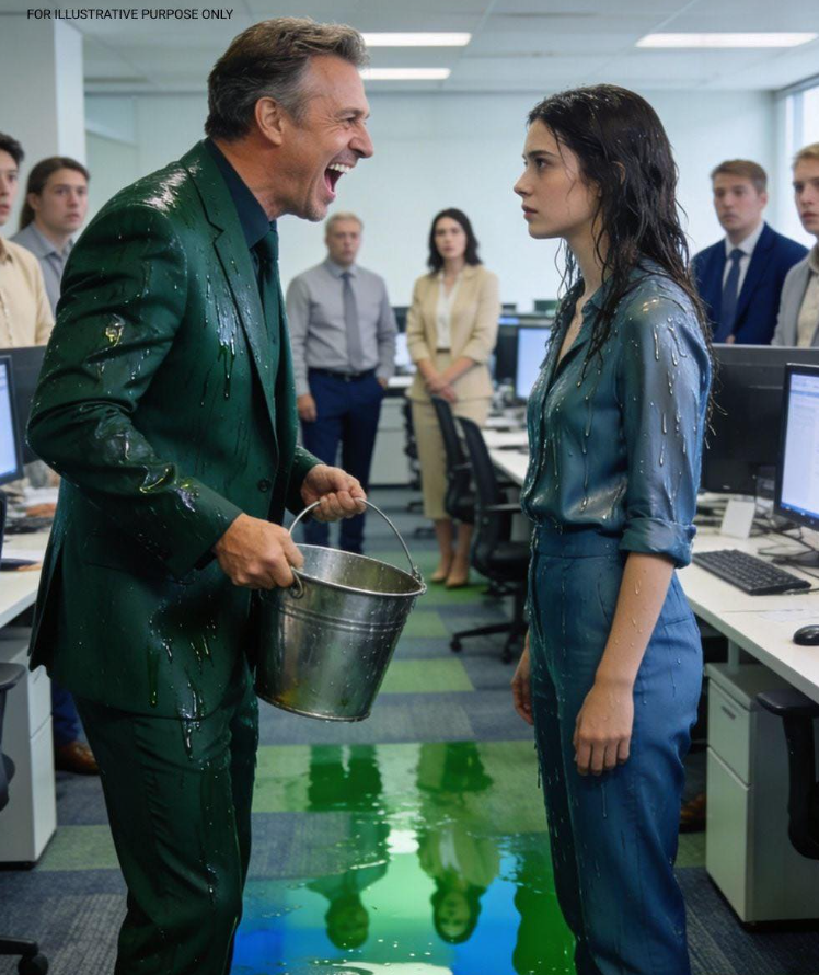 Julián liep rustig naar de waterdispenser, vulde een schoonmaakemmer naast de kopieermachine en kwam terug. Het kantoor viel in een verstikkende stilte. Iedereen voelde wat er ging komen. Niemand bewoog.