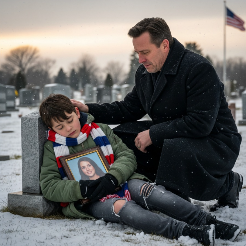 In eerste instantie dacht hij dat het een effect was van licht of een bewegende eekhoorn. Maar de figuur bewoog niet als een dier. Een jongetje, misschien zes jaar oud, lag opgevouwen aan de voet van het graf, gewikkeld in een dun, versleten deken. Zijn gezicht was tegen de koude steen gedrukt, en in zijn handen hield hij een foto.