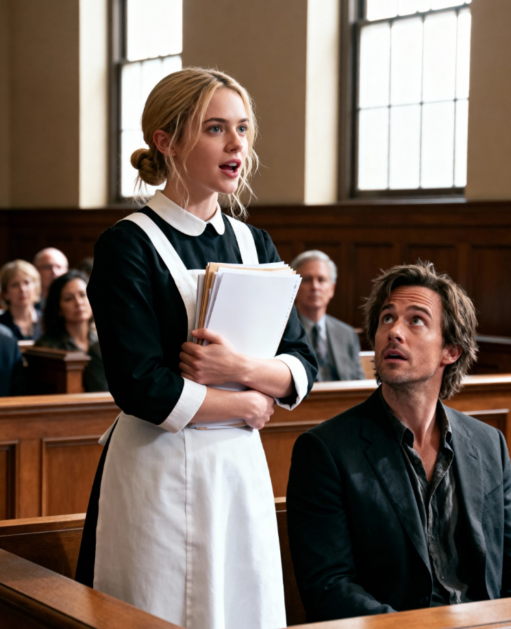 Een droge, spottende lach barstte los, die weerklonk onder het hoge plafond. Ogen richtten zich op de oorsprong van de stem. Een jonge vrouw stond bij de achterdeur, gekleed in een eenvoudig huisuniform. Ondanks de plotselinge aandacht bleef haar houding rechtop. Haar naam was Emilia Navarro en tot dat moment had niemand in de kamer haar als iets anders gezien dan een onderdeel van de set.