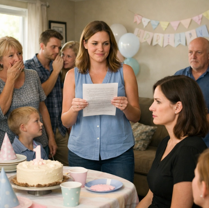 Het feest vond plaats in Cassandra’s kleine gehuurde huis aan de rand van Austin. Blauwe ballonnen en vrolijke guirlandes sierden de tuin, totaal niet in lijn met wat ik voelde. Ik was bijna thuisgebleven, maar mijn moeder stond erop: « Adam zou gewild hebben dat jij er was voor de familie. » Een zin die onmogelijk te tegenspreken is.