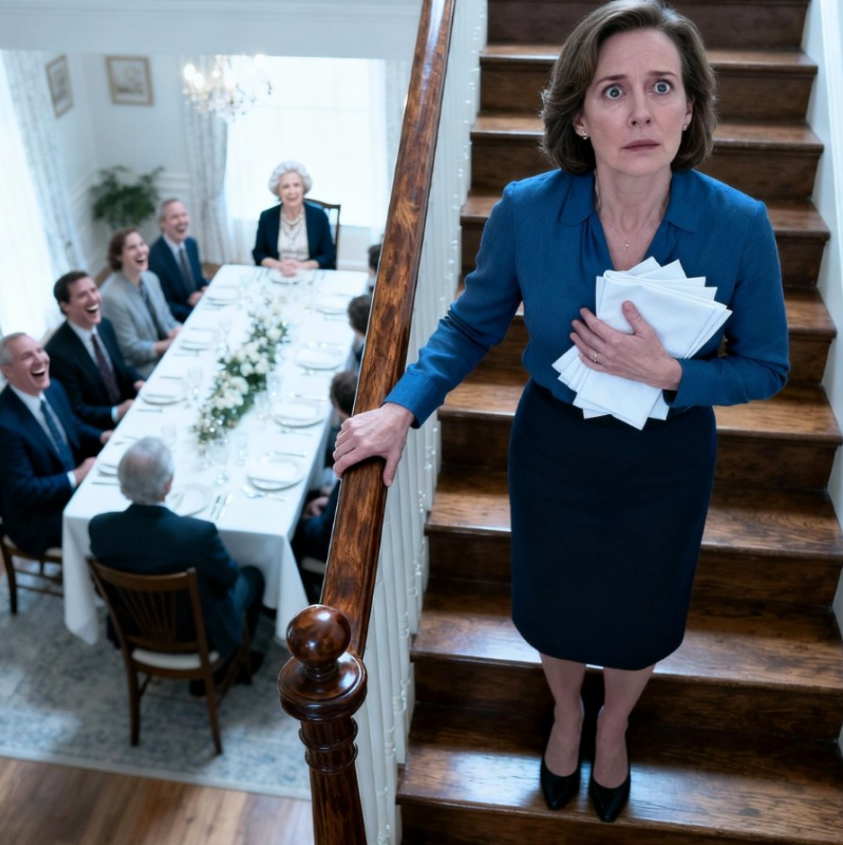 Deze zin verstijfde me bij de derde stap. Met één hand klemde hij de houten reling vast, de andere hield nog steeds de servetten vast die ik netjes had opgevouwen voor het diner ter viering van Rowans promotie. Beneden klonk er gelach uit de eetkamer: beleefde, gekozen stemmen, die van de mensen die mijn dochter wilde imponeren. Boven alle anderen hoorde ik al de zelfverzekerde toon van Sylvia Gregory, geïnstalleerd op de plek die altijd van mij was geweest.
