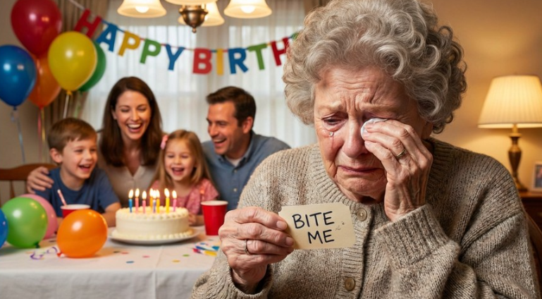 Toen kwam Lauren aan, met een klein ingepakt pakketje in haar handen. Ze gaf me die geforceerde, overwerkte glimlach die me altijd kippenvel bezorgde. « Gefeliciteerd met je verjaardag, Margaret! » zei ze, en voordat ik kon reageren, bond ze een hondenhalsband om mijn nek. In heldere en schitterende letters stond het inscriptie: « BITE ME ».