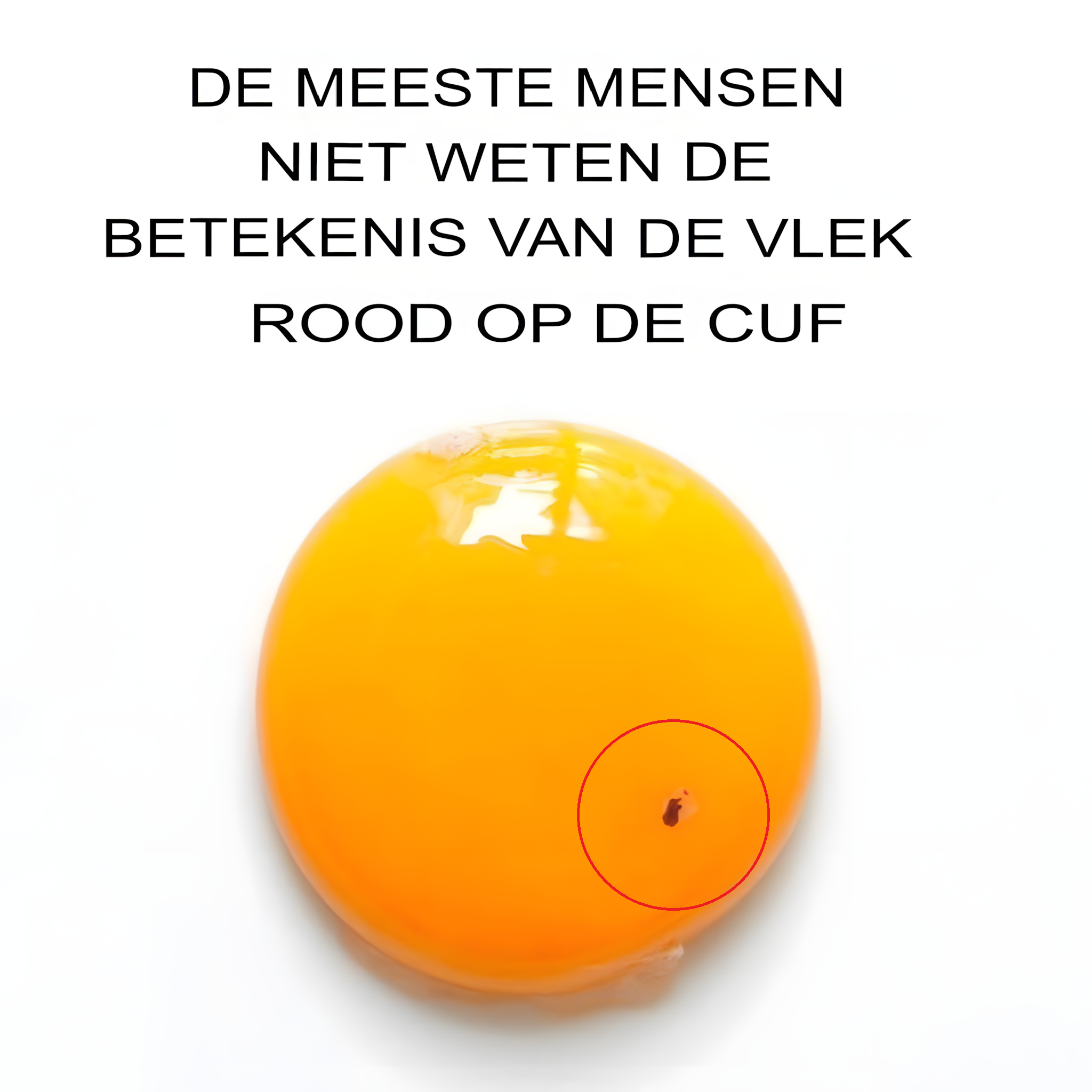 Nee, dit is geen teken van bevruchting of een « oud » ei , zoals we soms horen. In werkelijkheid is dit kleine roodachtige vlekje niets meer dan een klein bloedvaatje. Tijdens de vorming van het ei in het lichaam van de kip barst er soms een klein bloedvaatje en laat een vlekje achter op de dooier. Dit is noch ongebruikelijk , noch abnormaal, en belangrijker nog, het is helemaal niet gevaarlijk.