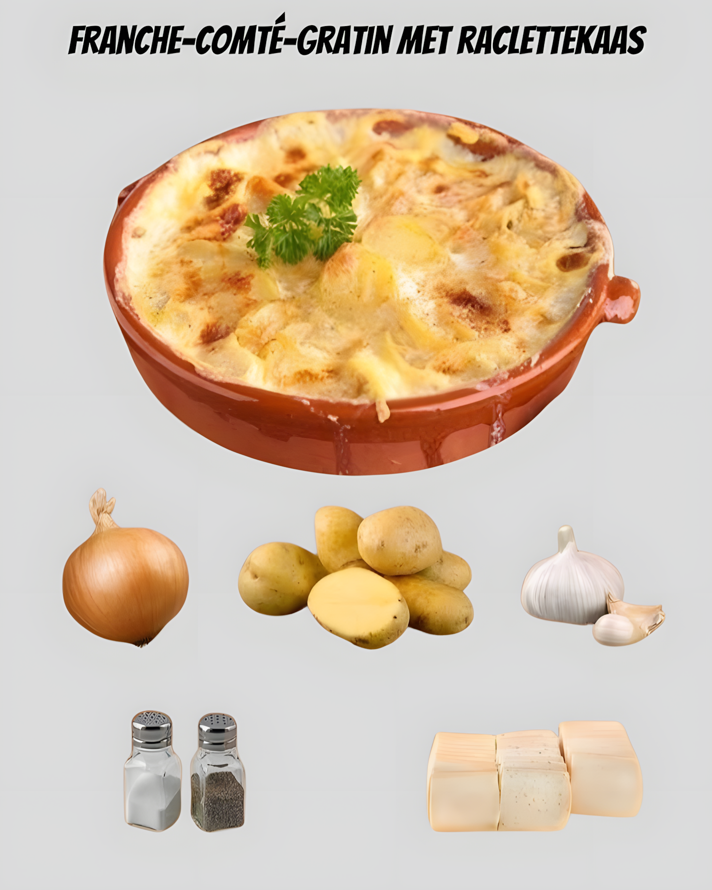 Duik in een kaasdelicatesse met deze Franche-Comté gratin met raclette kaas! Troostend en smakelijk, het zal je smaakpapillen verwennen.