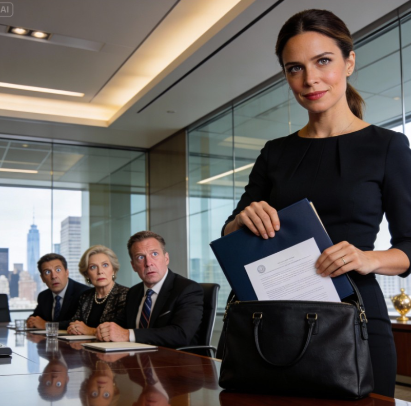 Ik glimlachte, zette mijn tas op tafel en haalde een marineblauwe map tevoorschijn. « Het is grappig, » zei ik terwijl ik het opende, « want ik heb ook iets bij te dragen. »