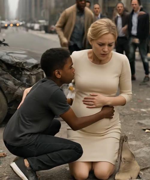 Voordat ze kon schreeuwen, blokkeerde een tengere figuur haar pad. Een tiener – niet ouder dan dertien – gooide zijn tengere gestalte naar haar toe en duwde haar uit de gevarenzone. Samen vielen ze op de stoep, de vrachtwagen raasde langs hen heen, op slechts enkele centimeters afstand.