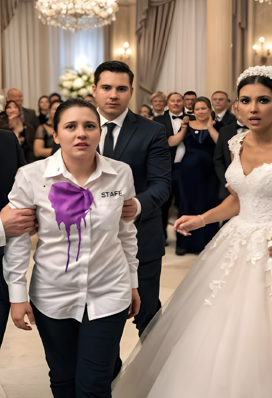 Bij het bijschenken van champagne raakte ik per ongeluk een glas, en een paar druppels spatten… niet op een gast, maar op mijn eigen witte outfit.