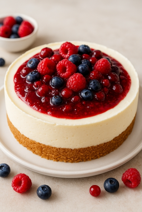 No-bake cheesecake met rode bessen