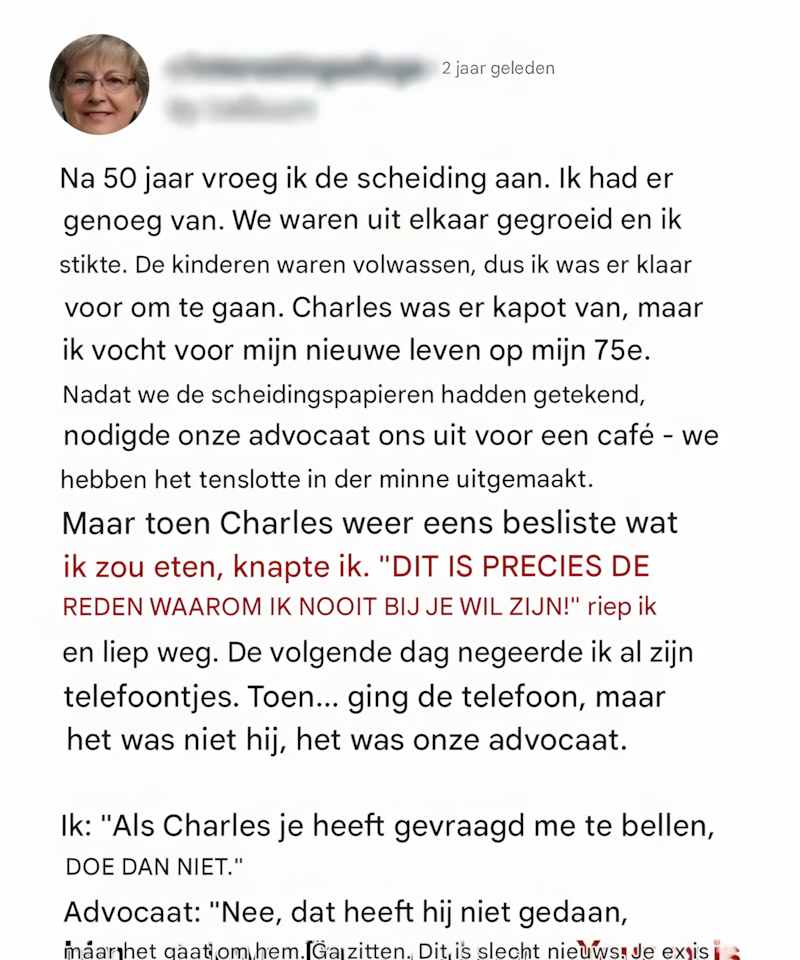 Na 50 jaar huwelijk vertelde de 75-jarige Rose haar man Charles dat ze wilde scheiden.