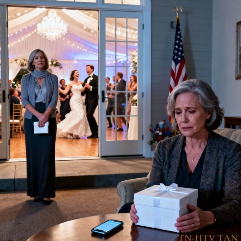 « Zou je even tegen de muur van de badkamer willen gaan staan, zodat je de trouwfoto’s niet verpest met je leeftijd? » vroeg mijn kersverse schoondochter met een gespeeld lieve stem, terwijl ze haar sluier rechtzette. Ik glimlachte, pakte mijn elegant ingepakte cadeau van de tafel en verliet de feestzaal. Toen ze de inhoud van de doos ontdekten, begonnen de telefoontjes om 3 uur ‘s nachts binnen te stromen en zijn sindsdien niet meer gestopt.