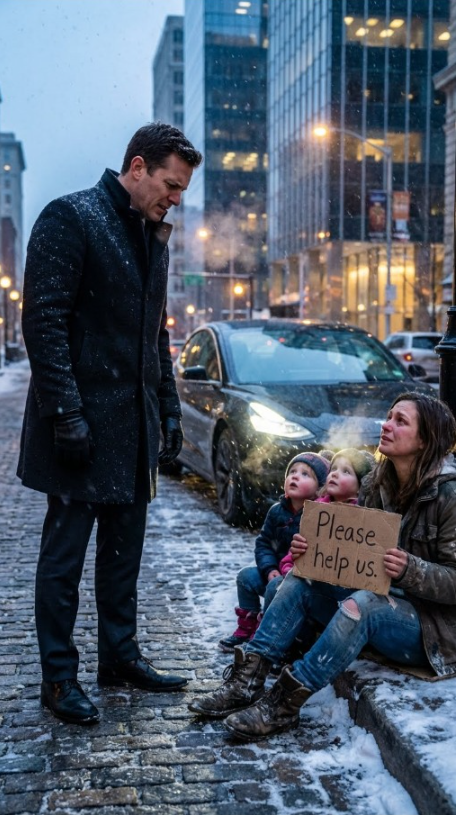 Dicht bij het trottoir, gewikkeld in een deken die te dun was, zat een vrouw met drie jonge kinderen die dicht tegen elkaar aan zaten om warm te blijven. Ze hield een kaartje vast waarop stond: « Help ons alsjeblieft. Alles telt. De scène was al overweldigend. Maar wat Liam totaal verlamde, was zijn gezicht.