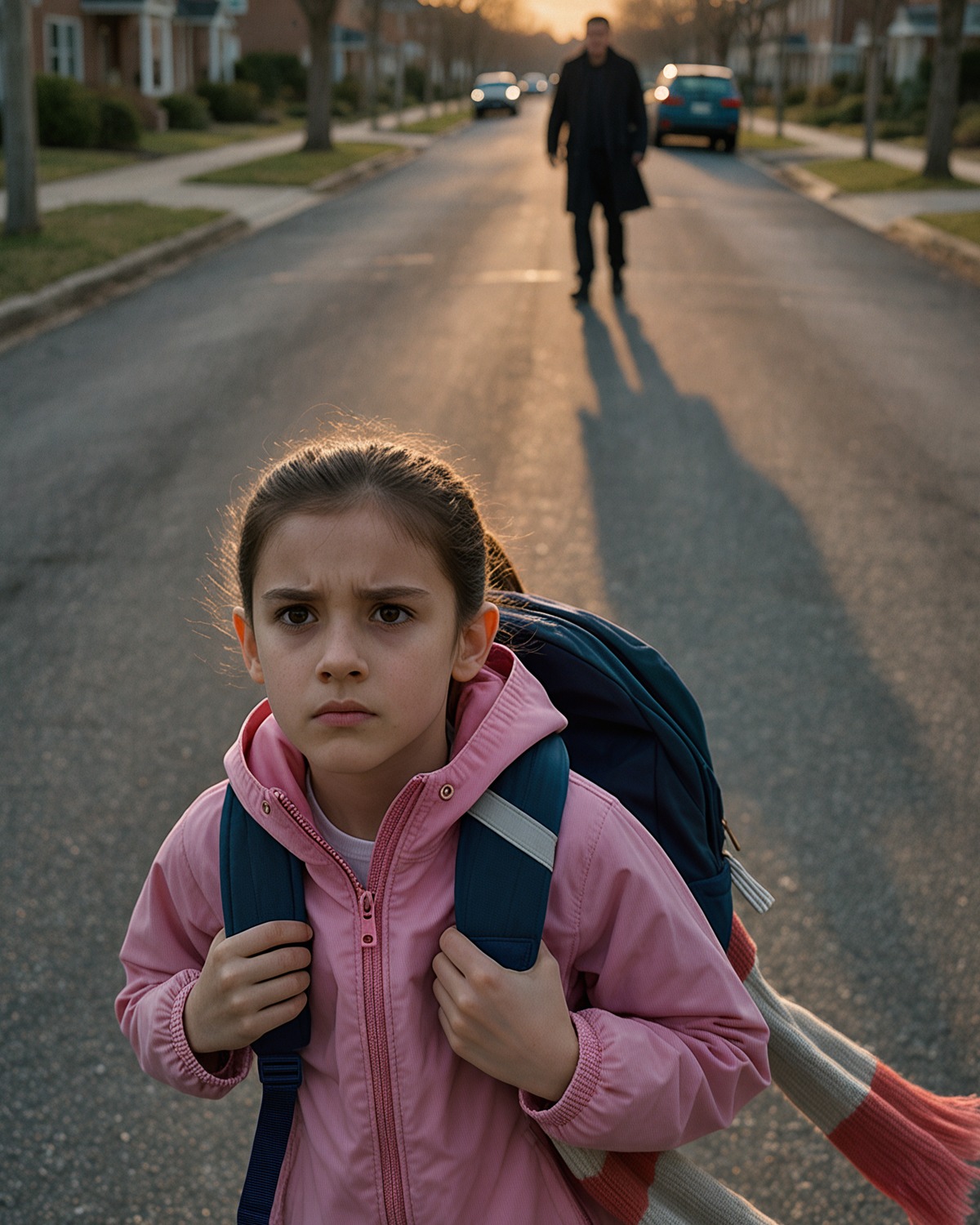Het was laat in de middag toen Emma Parker, een zevenjarige leerling uit groep 3, door een rustige straat in een buitenwijk liep. Haar roze rugzak bonkte tegen haar zij, volgepropt met schriften die steeds uit de rits glipten. Haar gestreepte sjaal gleed van haar schouder, hoe vaak ze hem ook recht trok.