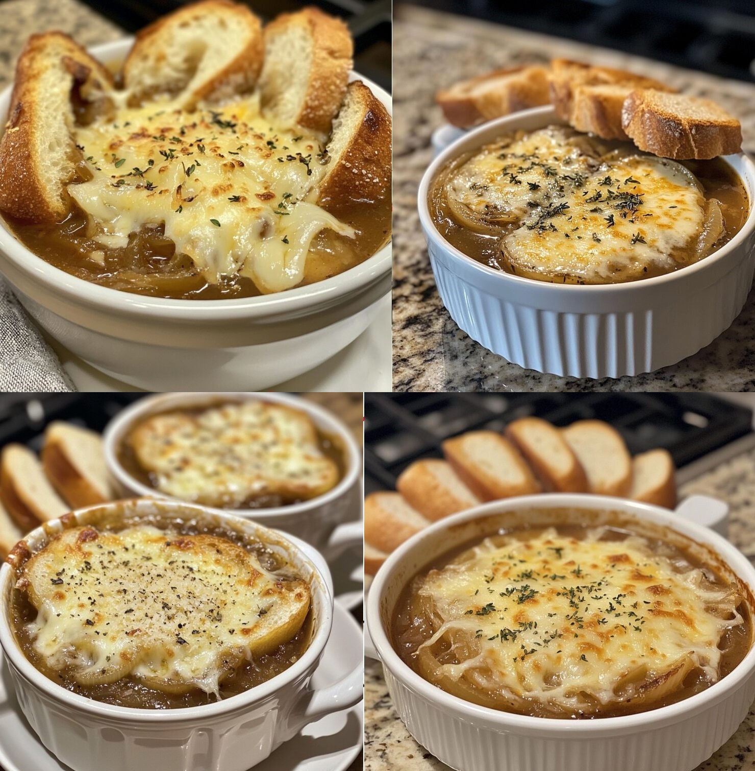 Stel je een koude avond voor, het huis gevuld met de warme geur van gekarameliseerde uien en gesmolten kaas. Franse uiensoep 🧅🧀belichaamt de essentie van de traditionele Franse keuken: eenvoudig, elegant en absoluut heerlijk. Deze soep is ontstaan op bescheiden wijze en heeft zich ontwikkeld tot een iconisch gerecht. Het is meer dan alleen een recept: het is een ervaring om van te genieten en te delen.