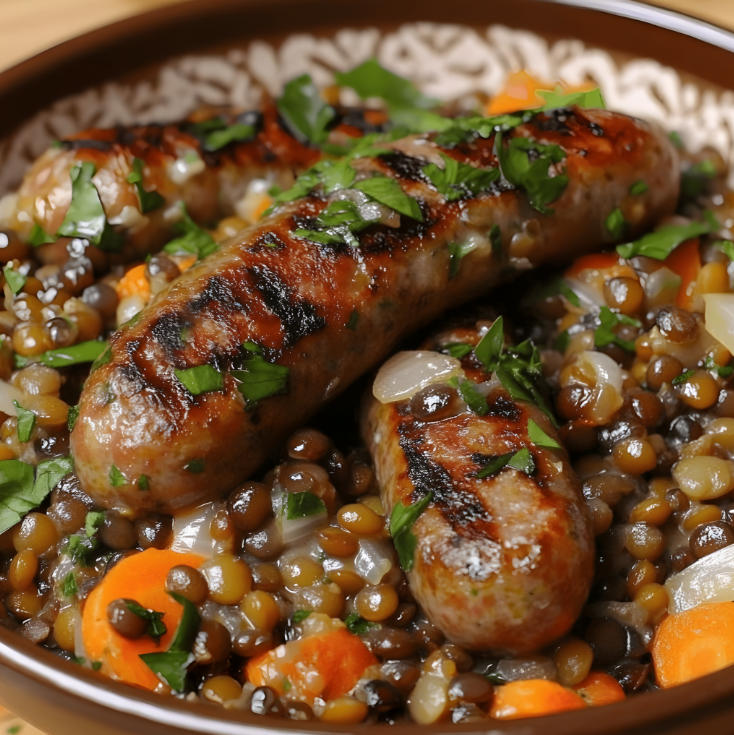 Dit heerlijke Franse streekgerecht – saucisse aux lentilles – is een echte klassieker uit Lyon. Simpel, hartig en ongelooflijk smaakvol. De combinatie van zachte groene linzen, geurige groenten en goudbruin gebakken worstjes maakt dit gerecht ideaal voor koude dagen, familiediners of wanneer je gewoon zin hebt in comfortfood met karakter. In Frankrijk wordt dit gerecht al generaties lang geserveerd, en terecht: het is voedzaam, aromatisch en verrassend eenvoudig te maken.