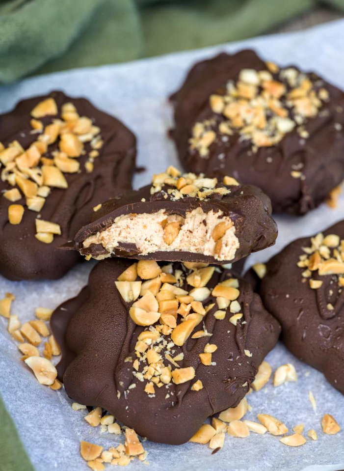 - Smelt de chocolade in een kom, doop het ijsje en leg het terug op het bakpapier om in de vriezer te zetten. Ik heb de laatste chocolade overheen gedruppeld en bestrooid met wat gehakte gezouten pinda’s (tenminste, dat had ik thuis 🙂).