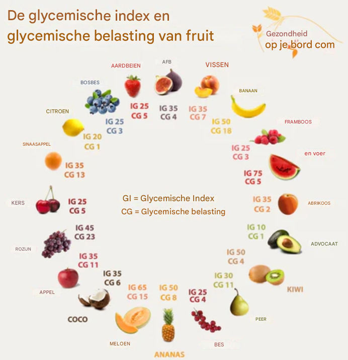 Deze vruchten hebben een matige GI (glycemische index) en zijn goed geschikt wanneer de hoeveelheden worden gecontroleerd.