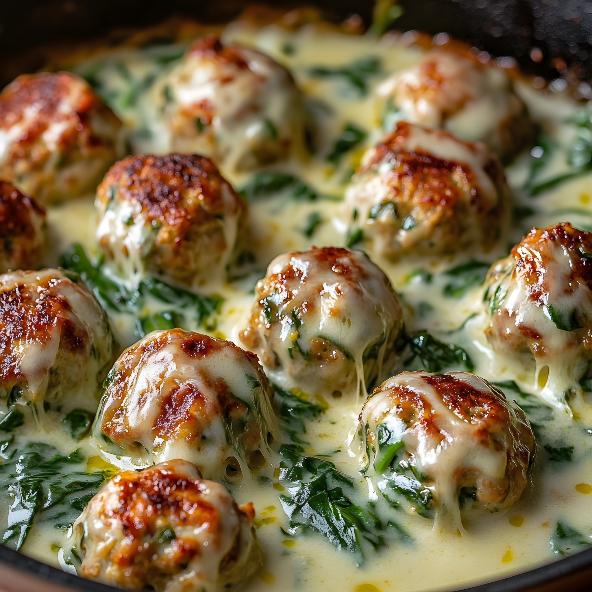Gehaktballetjes met Kaasvulling in Romige Spinaziesaus