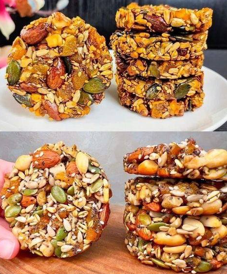 Voor een koekjesbodem met textuur, maal het noten- en zadenmengsel grof.