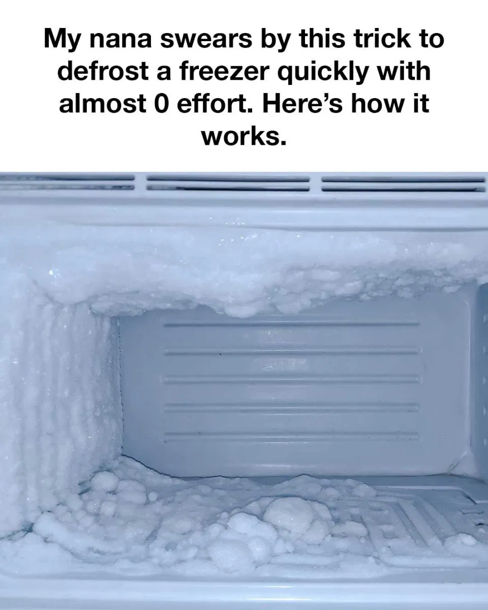 Nana’s methode is een ware revolutie voor iedereen die zijn vriezer met minimale moeite wil ontdooien. Haar truc is gebaseerd op een eenvoudig huishoudelijk hulpmiddel dat de meeste mensen al in huis hebben. Deze aanpak versnelt niet alleen het ontdooiproces, maar minimaliseert ook de rommel en het gedoe dat er doorgaans mee gepaard gaat.