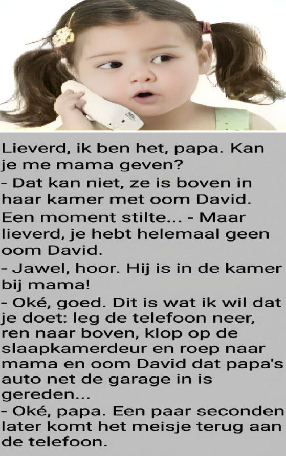 Na een paar seconden nam iemand op. Het was een klein meisje. De vader vroeg hem toen: “Hallo lieverd, het is papa aan de telefoon…. Kun je me mama doorgeven?