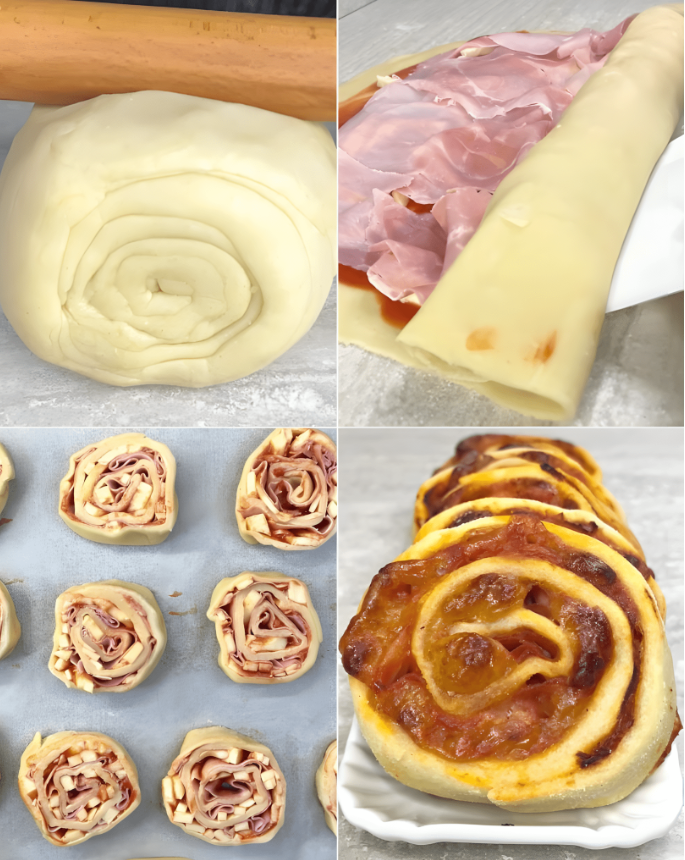 Deze hartige broodjes zijn een smaakvol en eenvoudig voorgerecht, speciaal bedacht door chef-kok Michele Ghedini. Perfect voor een buffet of als aperitief, en ze smaken zowel warm als koud overheerlijk. Je kunt kiezen voor zelfgemaakt bladerdeeg of een kant-en-klaar alternatief. Het deeg wordt besmeerd en gevuld met een heerlijke mix van ham, mozzarella en tomatenpuree. Na een korte rusttijd in de vriezer worden de plakjes gesneden en vervolgens 15 minuten in de oven gebakken – een traktatie voor jong en oud!