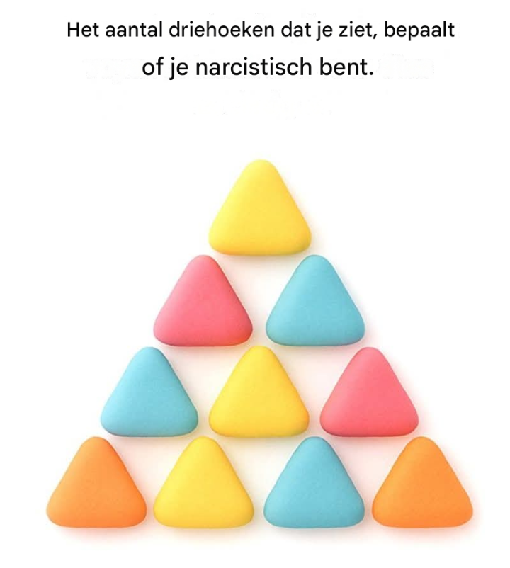 Op het eerste gezicht lijkt de afbeelding hierboven eenvoudig: een paar gekleurde driehoeken op elkaar gestapeld. Maar bij nadere beschouwing verandert de telmethode. Sommigen zien negen driehoeken, anderen dertien, en sommigen beweren er zelfs meer dan twintig te herkennen wanneer ze alle verborgen vormen optellen.