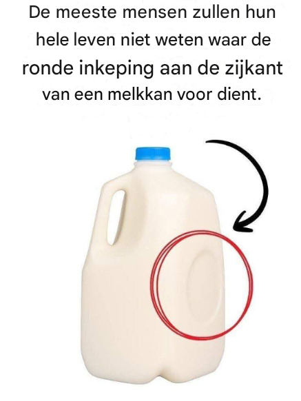 De meesten van ons hebben deze kleine, ronde deuk aan de zijkant van een plastic melkkan opgemerkt. Ik geef toe – ik heb deze kleine, mysterieuze cirkel vaker bekeken dan ik kan tellen. Je weet wat ik bedoel: een geperste cirkel die eruitziet als een fabrieksfout, of misschien zelfs een versiering. Maar dat is niet waar. Deze kleine pauze heeft een heel echt – en heel slim – doel.
