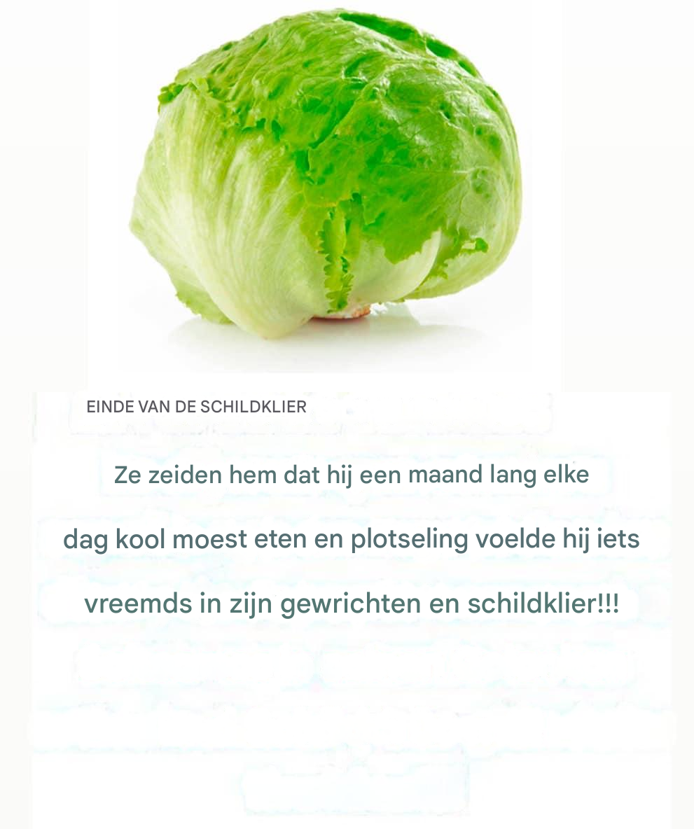 Haar werd verteld dat ze een maand lang elke dag kool moest eten, en plotseling kreeg ze een vreemd gevoel in haar gewrichten en schildklier.