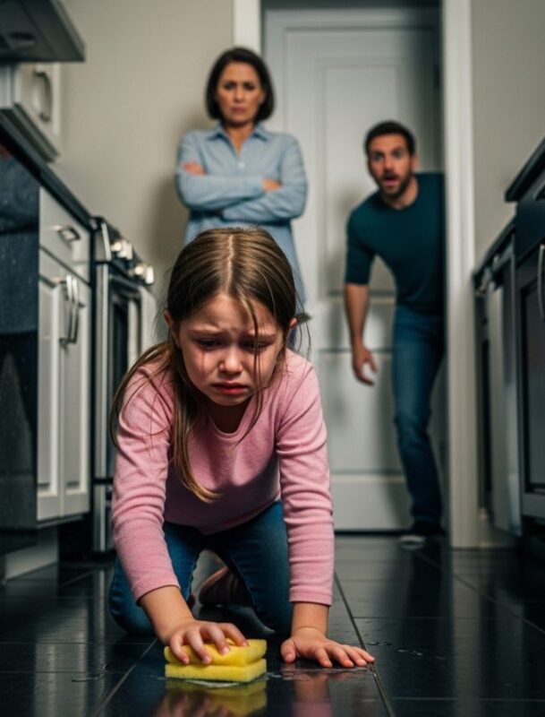 Het kindermeisje verstijfde, niet verwachtend dat de vader zo vroeg binnen zou komen. Richard keek naar het kind — moe, trillend en met kleine krassen op de handen. Zijn hart kneep samen van pijn en woede.