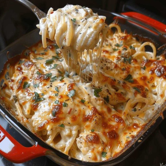 Dit romige en smaakvolle kipspaghettigerecht is een troostende en vullende maaltijd die perfect is voor elke avond van de week. De combinatie van malse kip, zachte kaassaus en stevige pasta zorgt voor een gerecht dat iedereen zal plezen.