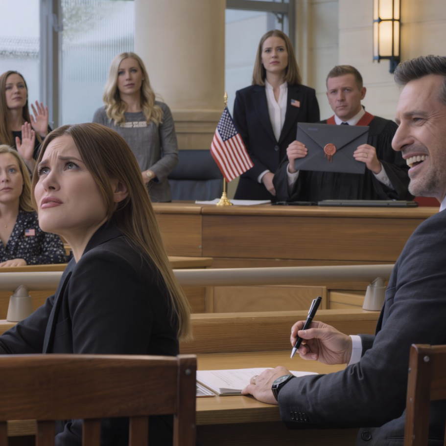 De punt van de pen gloeide onder de neonlichten van de rechtszaal, en Calebs lach weerklonk diep en zelfverzekerd—te luid voor een kamer die rook naar vloerwas en muffe koffie. Aan de rand van het kantoor van de griffier ving een kleine magneet in de vorm van een Amerikaanse vlag, een souvenir van een daar vergeten havenwinkel, bij elke ademhaling van de ventilatie het tl-licht. In de gang vluchtte een verouderde radio van Sinatra uit een schorre ritornello, niet in de maat van deze klinische stilte.