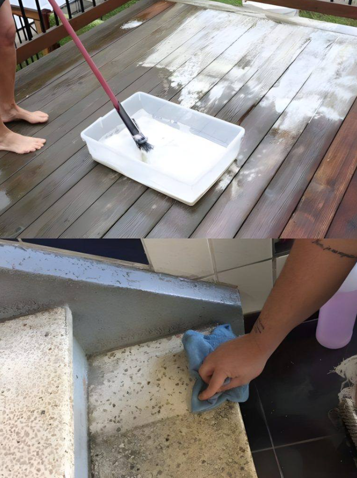 Let op: De genoemde middelen zijn natuurlijke producten. Voordat u begint, moet u controleren van welk materiaal de vloer of leuning is gemaakt, zodat deze niet beschadigd raakt.